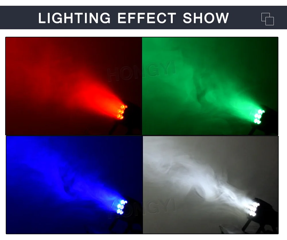 - Сверхъяркая тонкая банка Par Can со светодиодами мощностью 7x12 Вт (4-в-1 RGB)